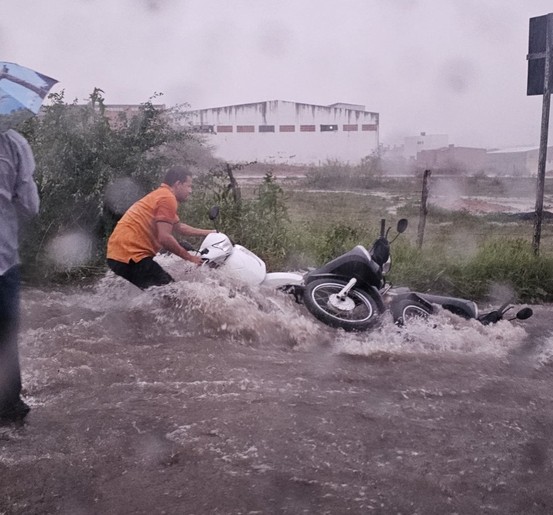 Em Lagarto, as ruas estão completamente alagadas, causando transtornos no trânsito de veículos e pedestres. Em um vídeo divulgado, é possível ver várias pessoas tentando recuperar um carro que estava sendo levado pela correnteza.
